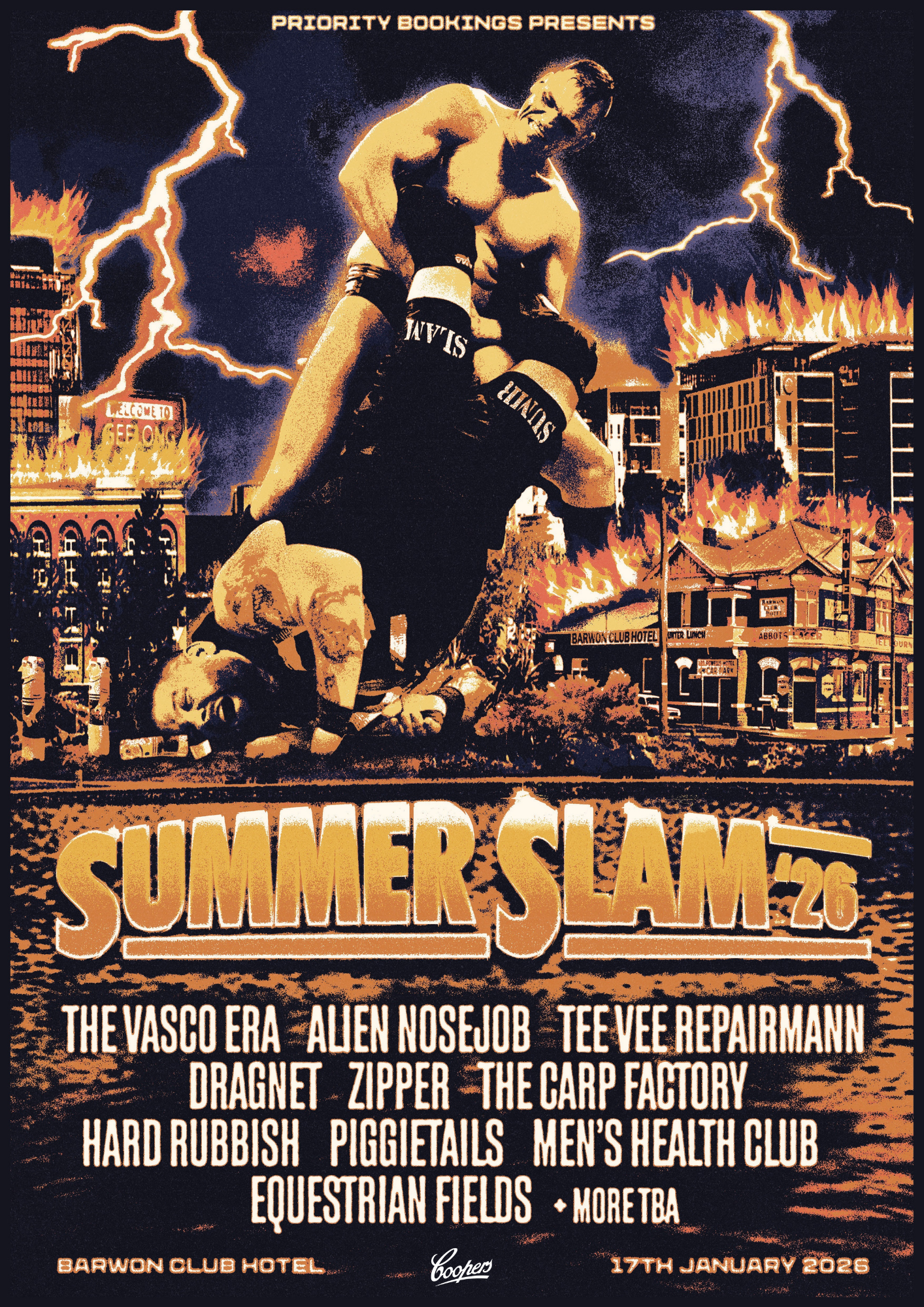 After vowing to never do another one of these again, Priority Bookings straps in to present you with the best one yet!  Summer Slam '26 returns to The Barwon Club for a Half Venue / Full Send party Saturday 17th January taking over the Bandroom & The Barn.