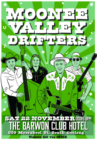 The Moonee Valley Drifters are heading down the highway, bringing their trailblazing brand of Country & Western to the Barwon Club Bandroom on Saturday 22nd November from 8pm. A true Melbourne institution, Tom Forsell and his long-running crew have been keeping the flame of classic country burning for over four decades.